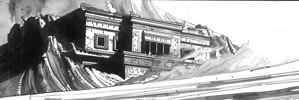 Upon entering, an air of enigma fills the space. Towering black pillars, etched with cryptic imagery and inscrutable words, punctuate the interior. At the heart of the temple rests a monumental statue of Nikantankya, hewn from the same obsidian-like stone, its eyes gleaming like distant stars.