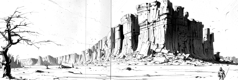 A flat and desolate land, where day time temperatures are oppressive. Most of the fauna of this region, including the humanoids, have adapted to a nocturnal lifestyle. The largest cities are Cro-Mag settlements founded around volcanic calderas. These settlements are dominated by a priestly caste of Lavamancers, who use telekinetic magics to conduct and form magma into walls, towers and temples. These communities are defensively oriented, as the Salt Wastes mark the westernmost vanguard of Orxis expansion. This leading edge of the Orxis horde represents the most violent and aggressive bands outside of the Blood Peaks.